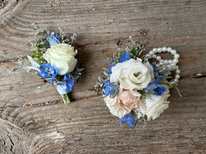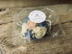 Please note: This photo is an example only. The product varies, and your corsage will include what is currently growing in the garden. In addition, we try our best to fill each corsage with all blooms from our farm, however occasionally we do source blooms from other farms/wholesalers to fill in our growing gaps.
