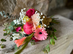 Please note: This photo is an example only. The product varies, and your arrangement will include what is currently growing in the garden. In addition, we try our best to fill each arrangement with all blooms from our farm, however occasionally we do source blooms from other farms/wholesalers to fill in our growing gaps.
