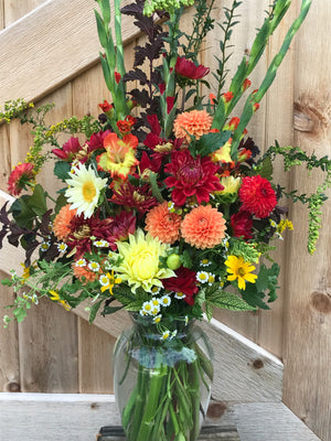 Please note: This photo is an example only. The product varies, and your arrangement will include what is currently growing in the garden. In addition, we try our best to fill each arrangement with all blooms from our farm, however occasionally we do source blooms from other farms/ the wholesaler to fill in our growing gaps.